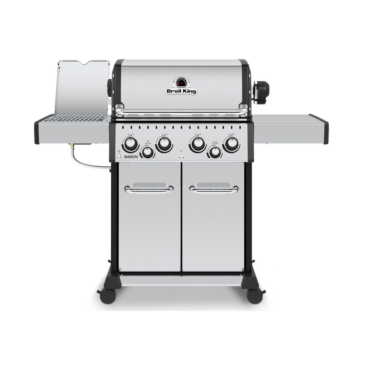 Der Baron S 490 IR verfügt über massive Gussroste, dem Flav-R-Wave Verdampfersystem, 4 Edelstahl Dual-Tube™ Brenner, sowie klappbare Edelstahl Seitenablagen und einen geschlossenen Unterwagen mit Edelstahltüren und einen doppelwandigen Edelstahldeckel.